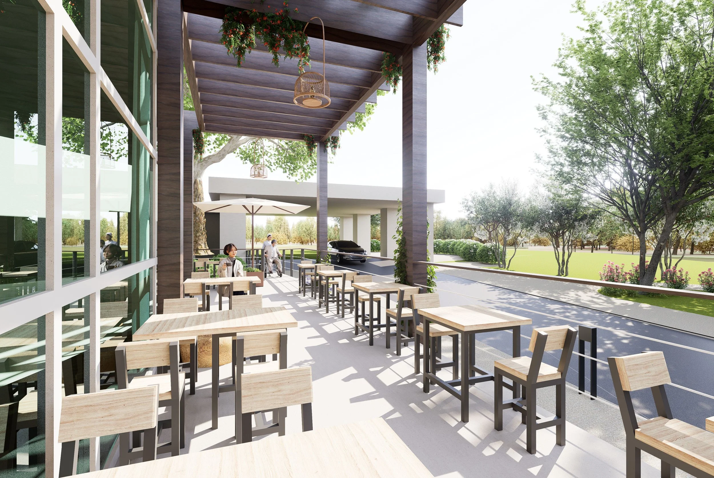 Imagine a place where families can step away for just a moment — to breathe, to clear their head, and to find a little comfort close to someone they love. A place where staff can step outside between shifts, share a meal, feel the breeze, and reset before returning to their work. Where the sound of quiet conversation and laughter mixes with rustling leaves and sunlight through the trees. This terrace will become that place.